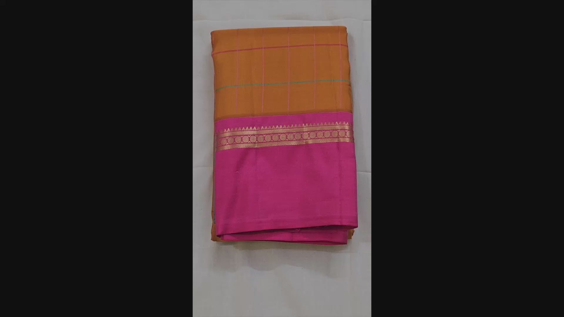 This elegant saree features a mustard-colored body crafted from pure soft silk, offering a lightweight and comfortable drape. It is adorned with delicate thread lines running across the fabric and highlighted by a distinctive ganga jamuna border in sea green and pink, with a subtle single jari line. The half jari design adds refined shimmer, making this saree ideal for special occasions where sophisticated simplicity is desired.